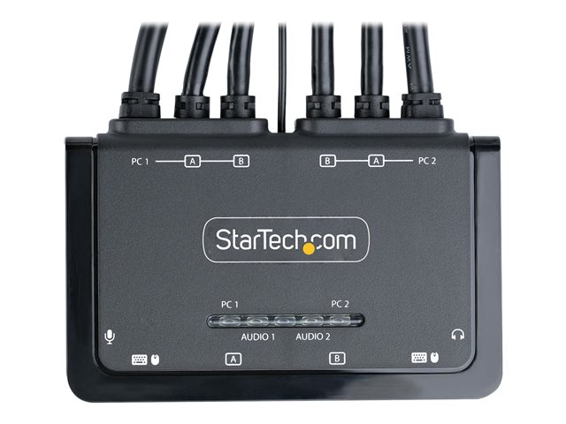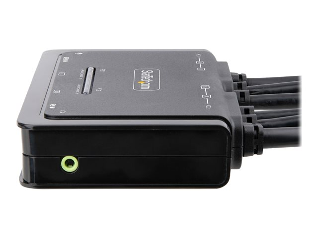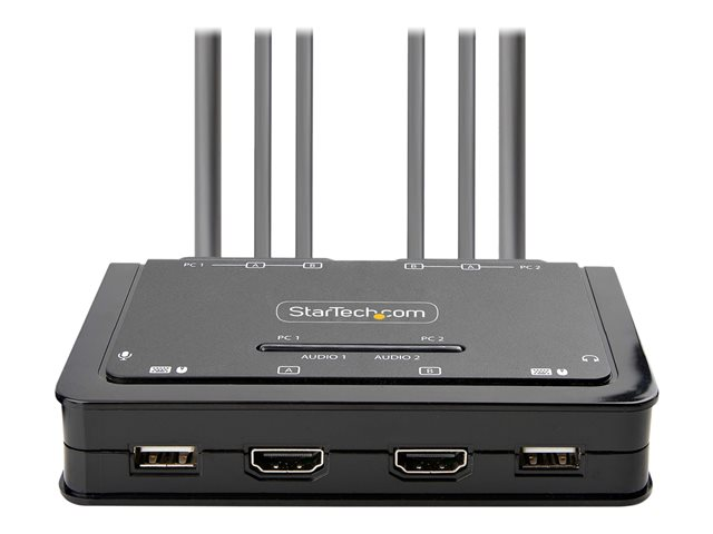 - KVM-switch för dubbla 4K 60 Hz-skärmar - möjliggör växling mellan två USB-A- och HDMI-aktiverade stationära datorer för att dela mus, tangentbord, ljud och dubbla 4K 60 Hz HDMI-skärmar