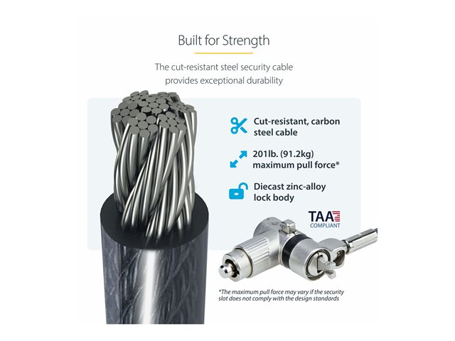 Lås för säkerhetskabel - svart & silver - 2 m - TAA-kompatibel (paket om 25)